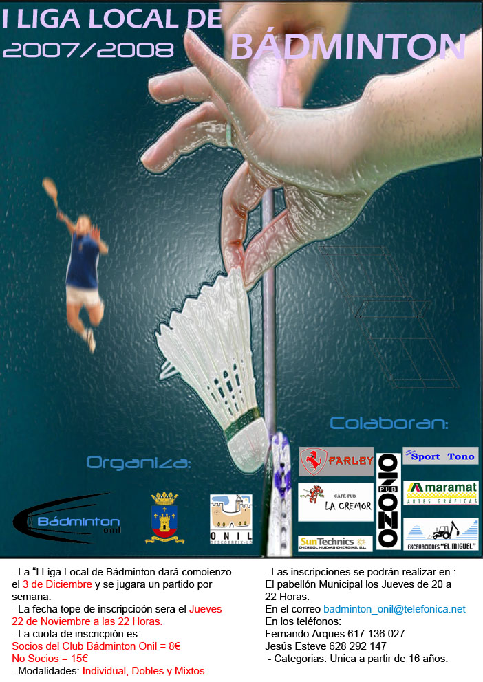 La liga local de Bádmiton en la localidad de Onil dará comienzo el próximo día 3 de diciembre.