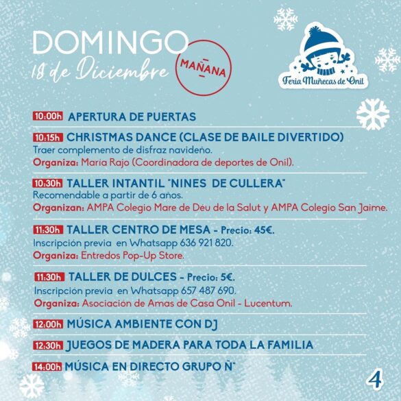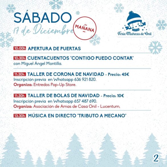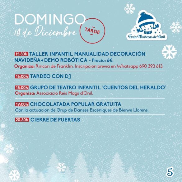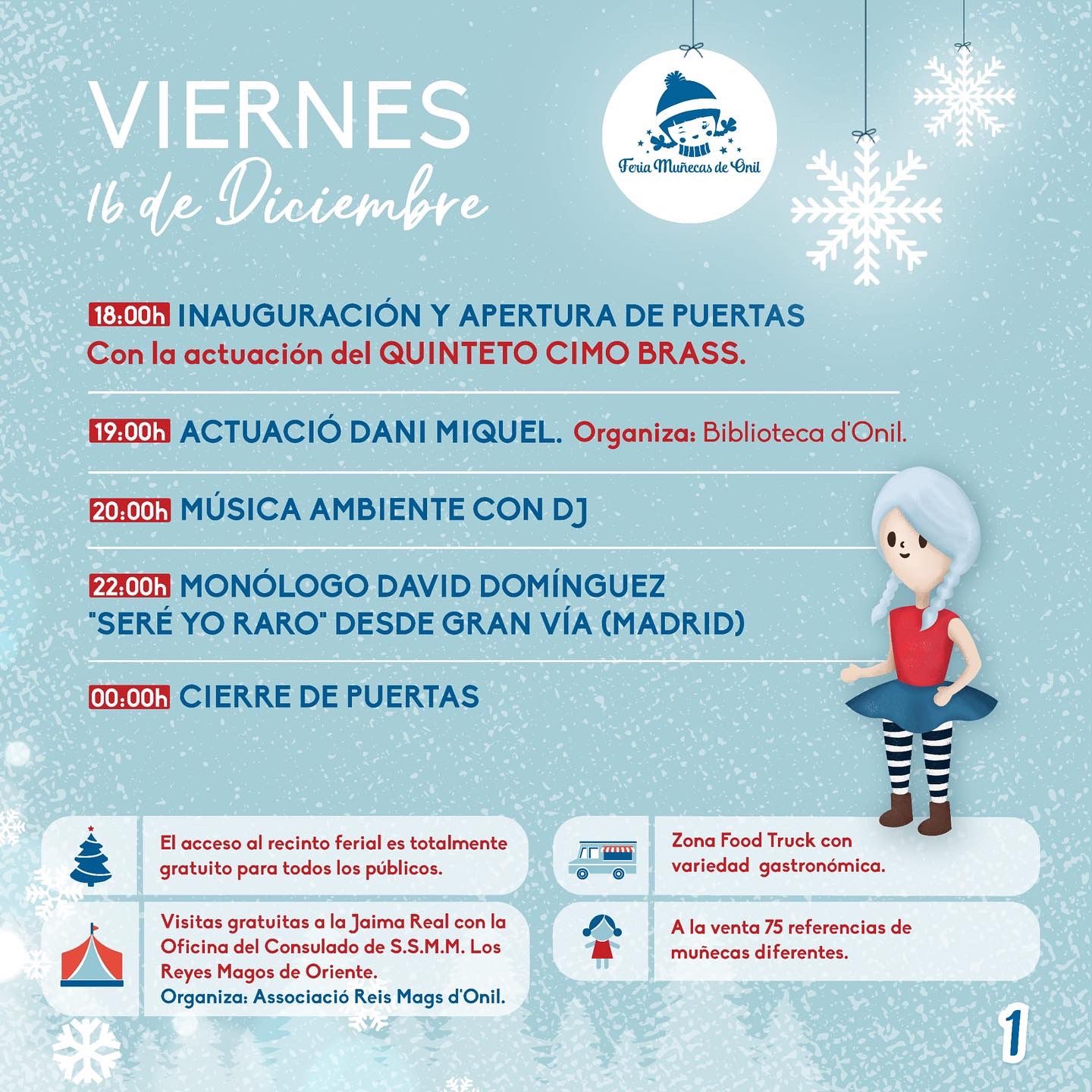 El Ayuntamiento de Onil espera la visita de más de 7.000 personas durante los tres días que durará la primera edición de la Feria Muñecas de Onil – Navidad 2022 -y en el que hay programadas actividades para todos los públicos.