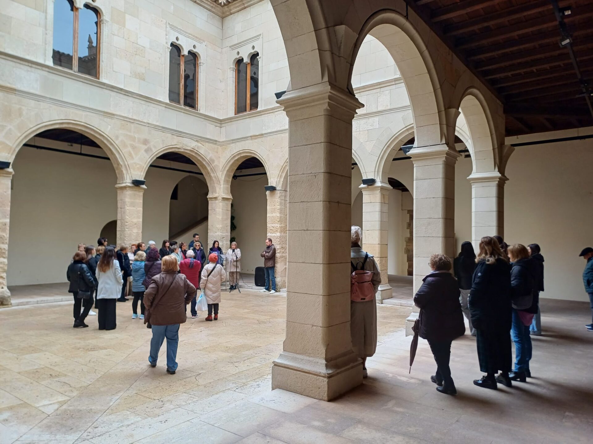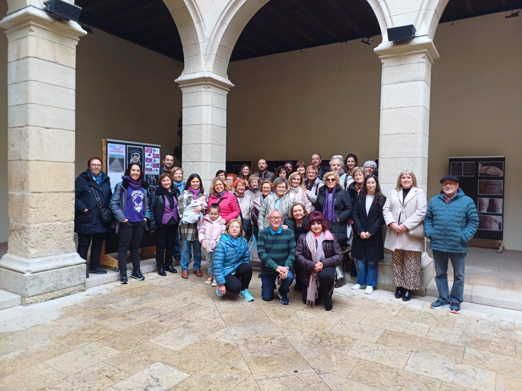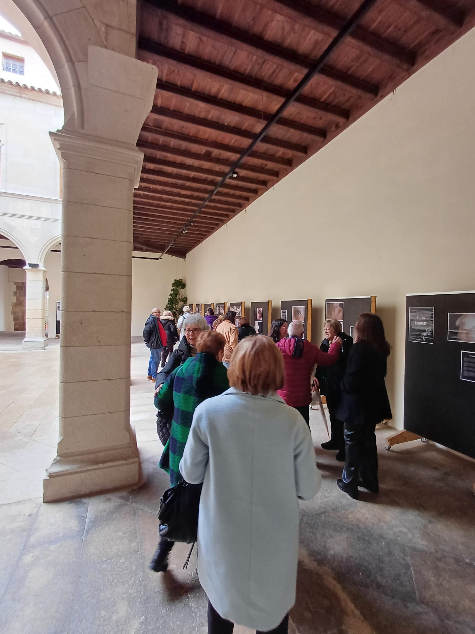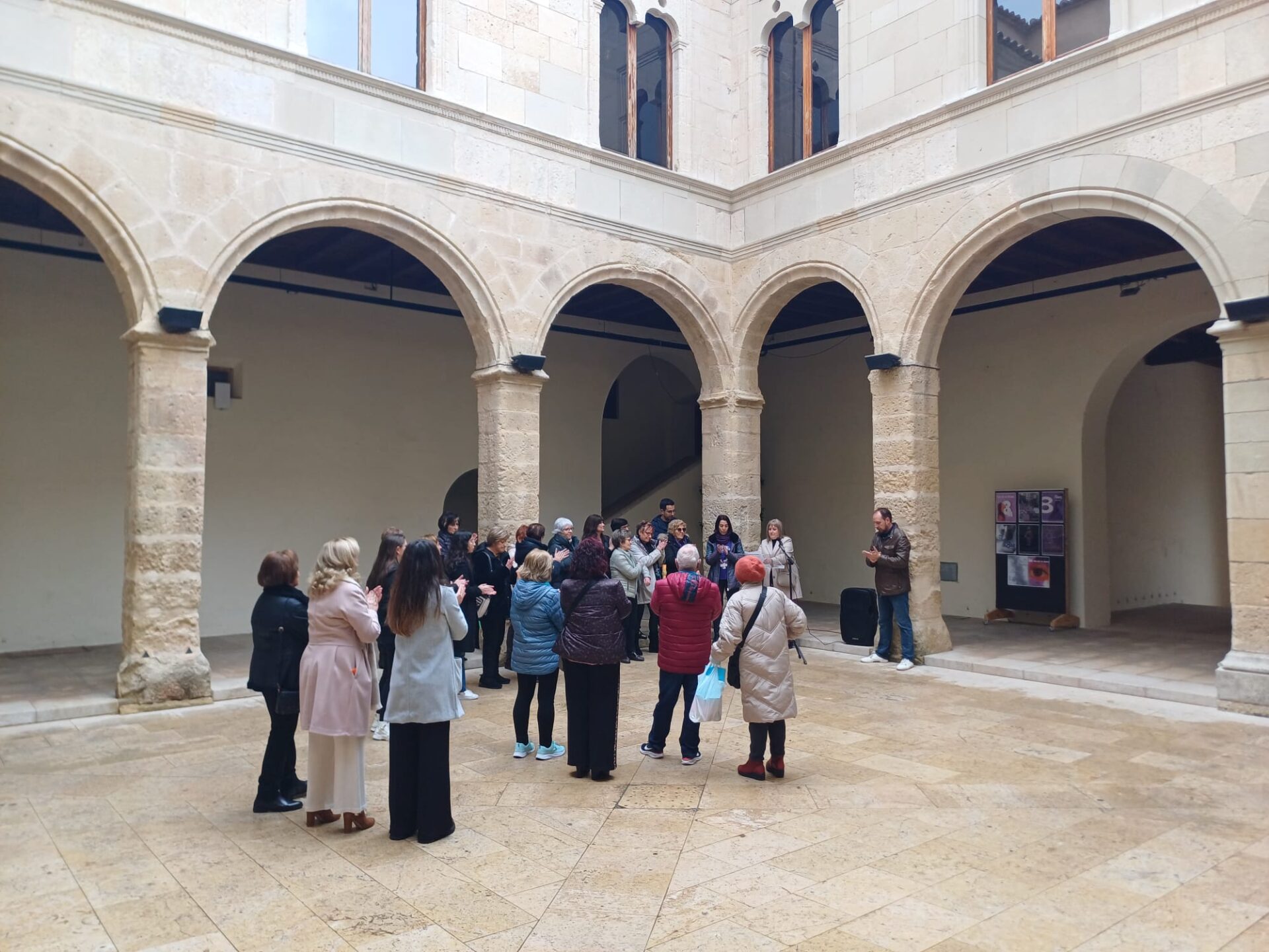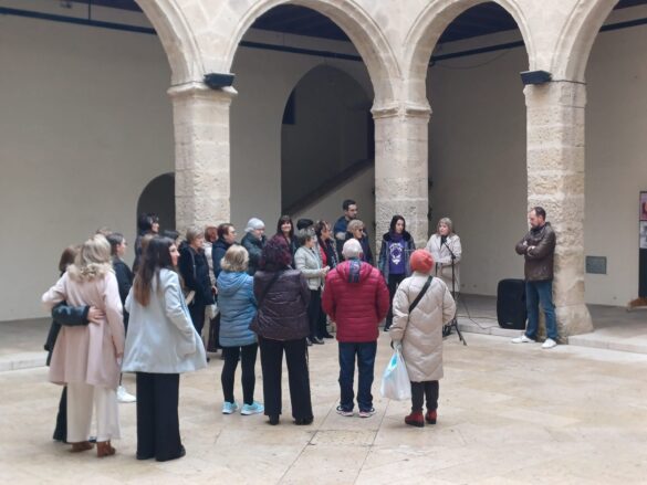 La mañana comenzó con la inauguración de dos exposiciones en el claustro del Palacio del Marqués de Dos Aguas. La primera, titulada “El cos esborrat”, es una exposición fotográfica realizada por las alumnas del Taller de Desarrollo Holístico. La segunda muestra, “Proyecto Marquesinas”, reúne carteles creados por estudiantes del IES La Foia de Ibi dentro de un proyecto comarcal de sensibilización sobre la igualdad de género.