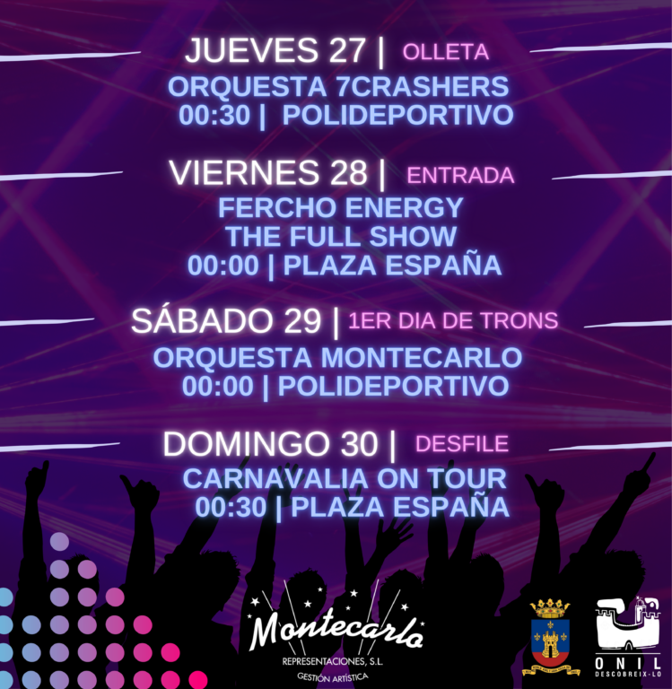 Las fiestas de Moros y Cristianos de Onil están a la vuelta de la esquina y ya se han publicado los horarios y los artistas que acompañarán las fiestas nocturnas del municipio.