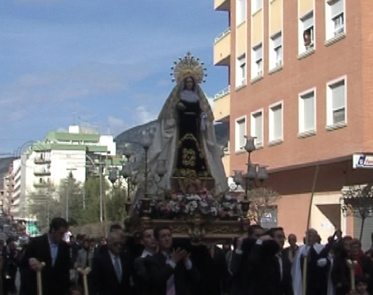 En la vecina localidad de Onil, acto tradicional en la Semana Santa en los pueblos de la comarca. Procesión y repique de campanas.