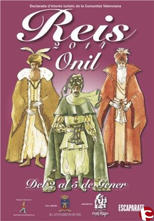 -Sábado 4 de enero. A las 18:30 horas, llegada a Onil del Heraldo de Sus Majestades, con el siguiente recorrido: calle Santa Rita, avenida de la Paz, calle Portal y avenida de la Constitución, hasta el Centro Cultural, donde será recibido por la Asociacion de Reyes Magos, las autoridades de la villa y todos los niños que quieran entregarle sus cartas.