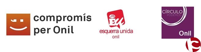 Amparo Monllor Garulo, en representación del Grupo Municipal Compromís per Onil, Verónica Vílchez Giménez, en representación del grupo Municipal Esquerra Unida Onil, y Beatriz Martínez Durá, concejal no adscrita, del M.I. AYUNTAMIENTO DE ONIL.