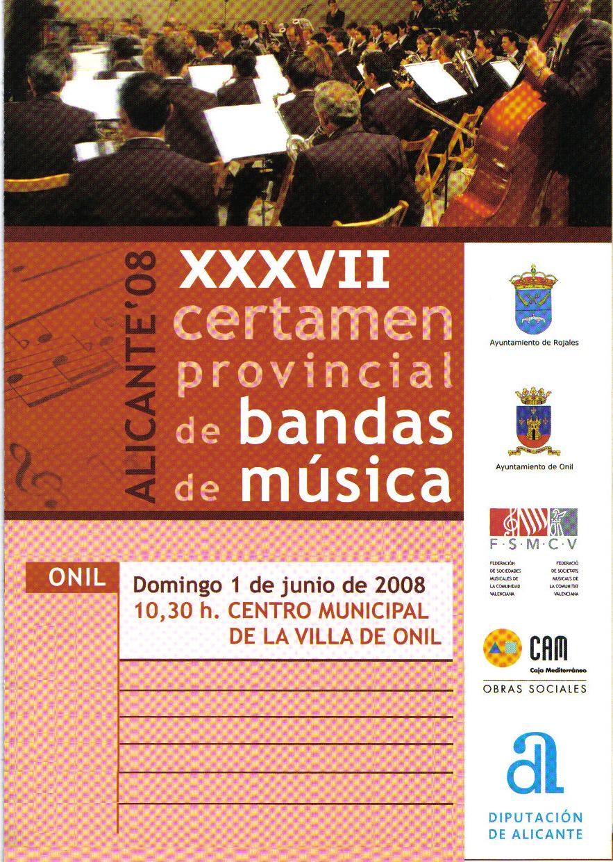 Este año se celebra el XXXVII Certamen Provincial de Bandas de Música organizado y patrocinado por la Excma. Diputación Provincial de Alicante. Se celebrará en la Villa Onil. PROGRAMACIÓN