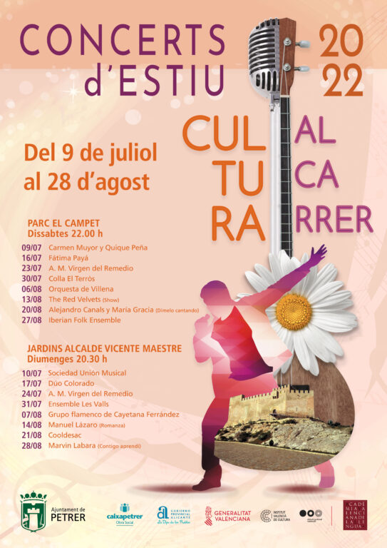 Posteriomente, hasta el 28 de agosto, pasarán por los escenarios de los “Concerts d`estiu” Fátima Payá, la Colla El Terròs, la Orquesta Villena, The Red Velvets, Alejandro Canals y María Gracia, la Iberian Folk Ensemble, en el Parque El Campet; y el Dúo Colorao, la Asociación Musical Virgen del Remedio, Ensemble Les Valls, el Grupo flamenco Cayetana Ferrández, Manuel Lázaro, Cooldesac y Marvin Labara.