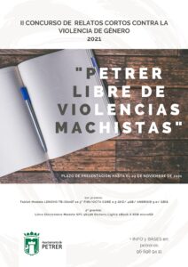 Los relatos cortos «Si las paredes hablasen», de Blanca Poveda Ruiz, de 15 años, y «Els espais serán nostres», de Lucía García Ubiedo, de 24 años, se alzan como los ganadores del segundo Concurso de relatos cortos contra la violencia de género «Petrer Libre de Violencias Machistas» organizado por las concejalías de Igualdad y Juventud con motivo del 25N, Día Internacional de la Eliminación de la Violencia contra las mujeres.