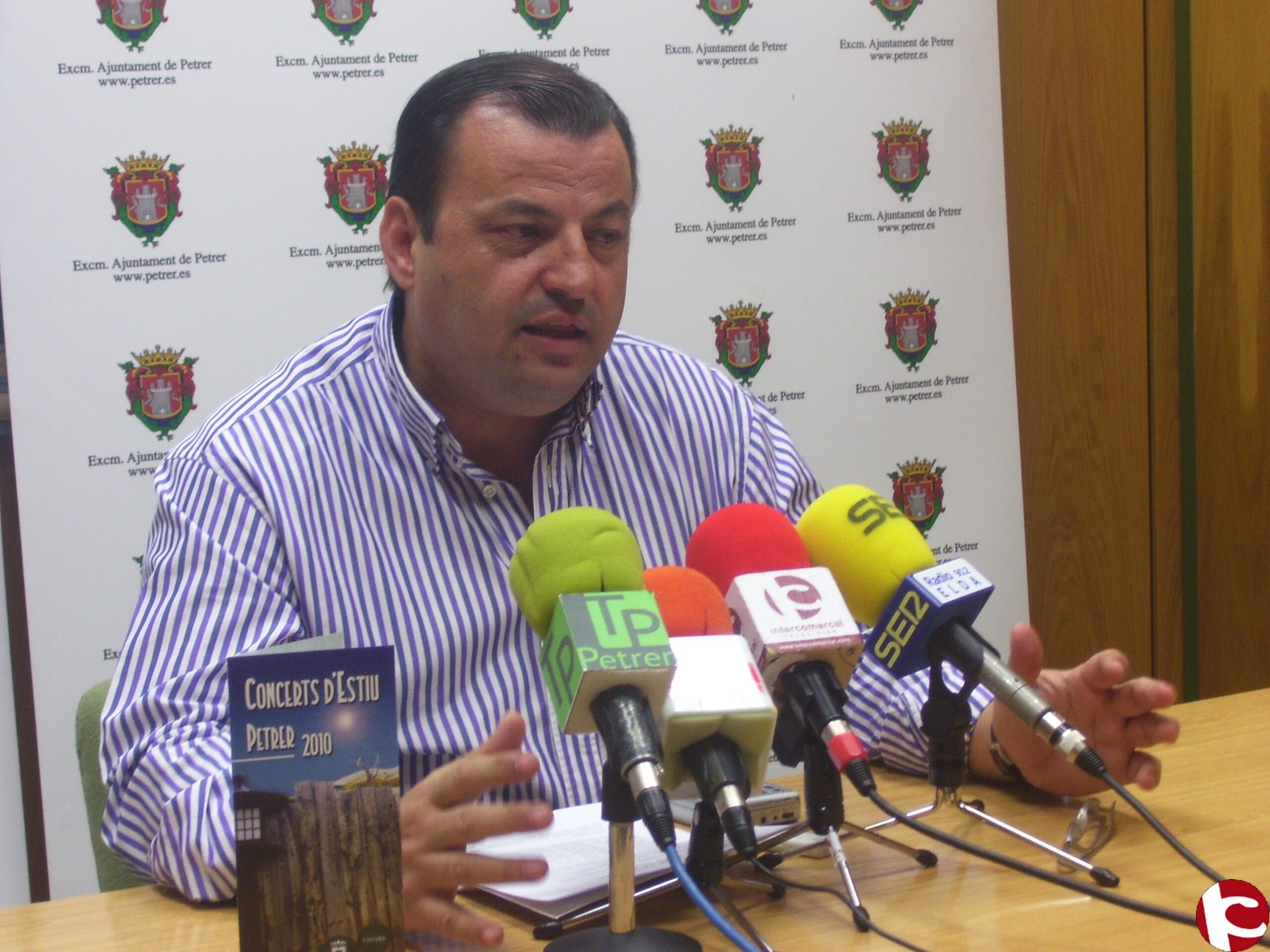 Petrer, 01 de julio de 2010.- El concejal de Cultura, José Miguel Payá, ha anunciado que el próximo 9 de julio darán comienzo los Concerts dEstiu 2010, que se prolongarán durante todo el verano hasta el 5 de septiembre y que contará con 27 actuaciones (14 de ellas de grupos y artistas locales), en tres auditorios (los viernes en el parque 9 dOctubre, los sábados en el Campet y los domingos en la Plaça de Baix), y con espectáculos de música, baile y cine familiar. Payá ha comentado que estos eventos cada año suponen un gran esfuerzo humano y económico, pero convierten a Petrer en un referente cultural y musical durante el verano. Es de los pocos municipios de la zona que ofrecen una oferta tan amplia y variada en estos meses.