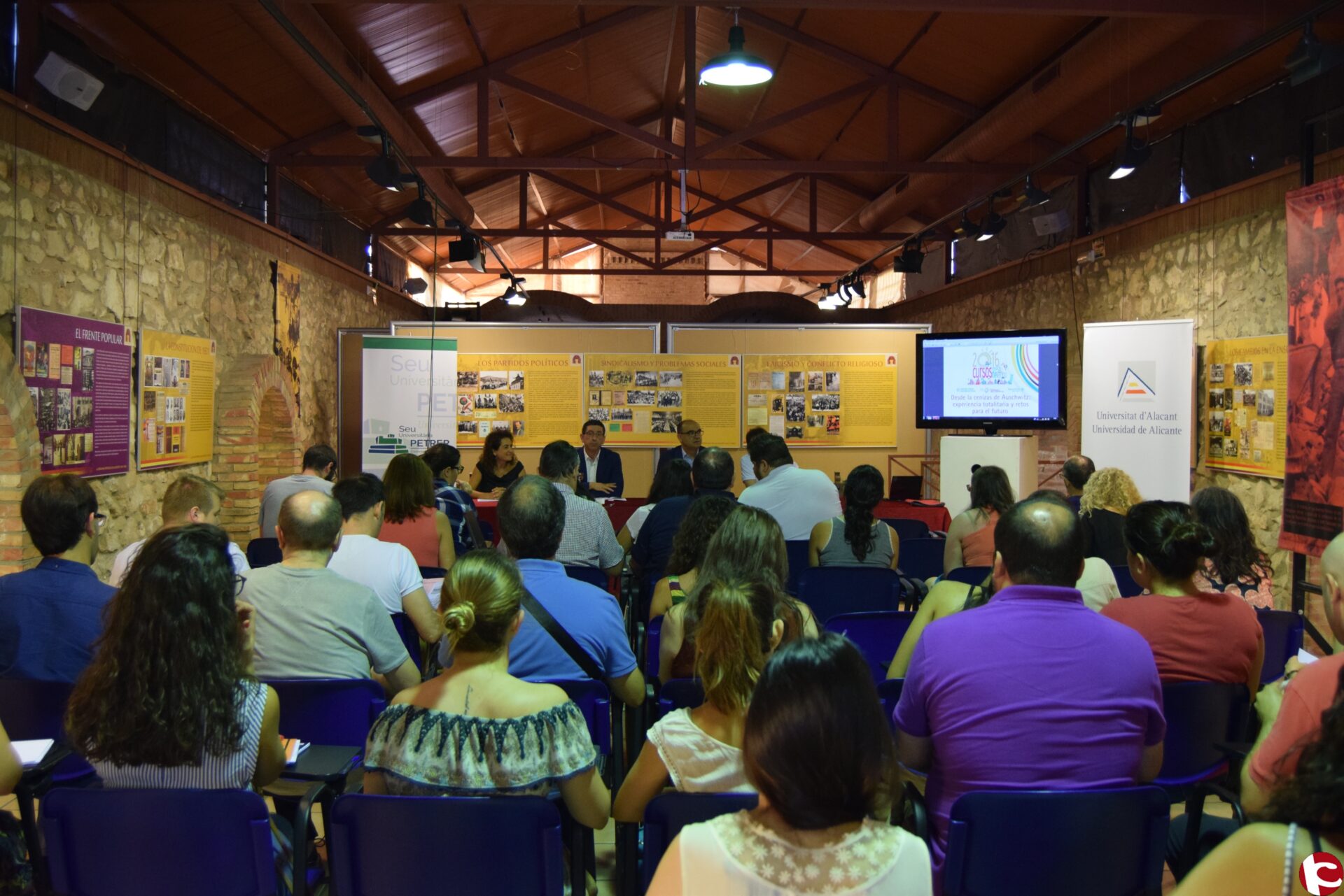 Alrededor de 40 personas han participado en este primer curso de verano de la sede universitaria de Petrer que tendrá lugar desde hoy hasta el miércoles en el Forn Cultural de Petrer, lugar donde también está presente la exposición La Segunda República en Alicante, exposición que la Universidad de Alicante a cedido a la sede universitaria de Petrer este mes de julio.