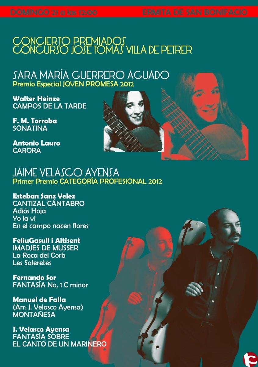 Dentro del programa de conciertos del Festival Internacional de GUitarra José Tomás, el domingo dia 21 de julio, en la Ermita de San Bonifacio, tocaron los guitarristas JAIME VELASCO AYENSA y SARA MARÍA GUERRERO AGUADO.