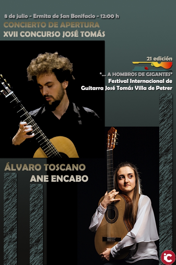 El día 8 de julio en la Ermita de San Bonifacio, concierto de Jóvenes Premiados en el Concurso de Guitarra José Tomás Villa de Petrer: Álvaro Toscano y Ane Encabo