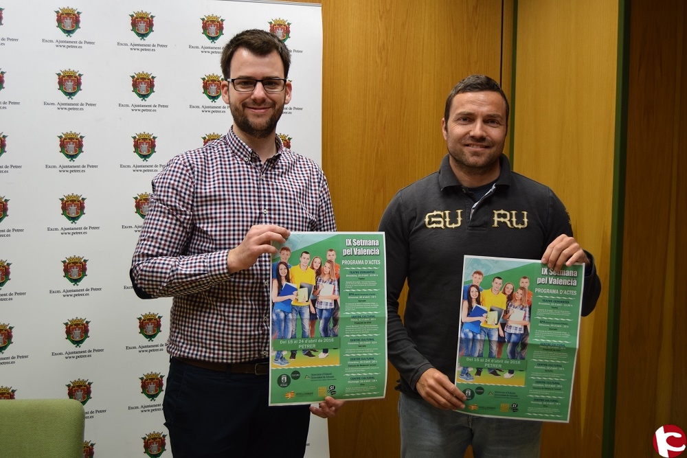 El Concejal de Cultura Fernando Portillo acompañado del responsable de normalización lingüística del Ayuntamiento de Petrer, Jordi González, han presentado esta mañana la IX Setmana pel Valencià que comenzará el próximo viernes y se extenderá hasta el domingo 24 de abril.