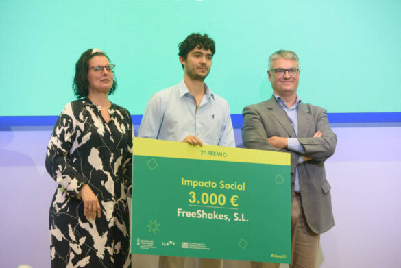 Y el segundo premio también en la categoría de Impacto Social, dotado con 3.000€, fue para Freeshakes, ganadores de la última edición de Petreremprende. Un proyecto que busca mejorar la calidad de vida de las personas intolerantes a la fructosa a través de la creación de una nueva generación de productos a base de frutas libres de fructosa, obtenidos gracias una tecnología que mantienen la integridad y el valor nutricional de las frutas. Álvaro Valdés y Antonio Fenoll buscan facilitar la elaboración de productos alimenticios aptos para intolerantes a este glúcido como batidos, zumos, purés, helados, yogures de frutas o comida infantil.
