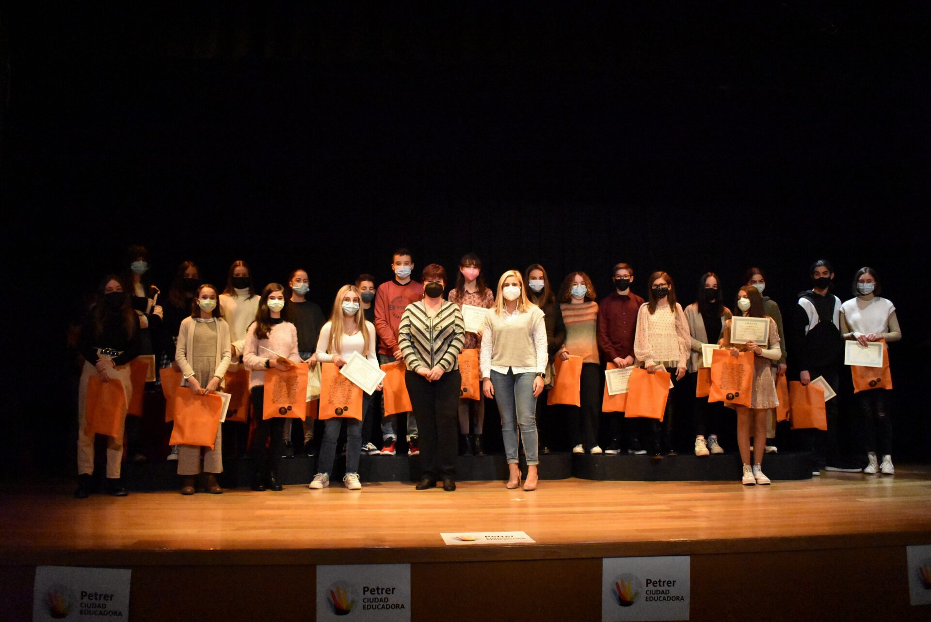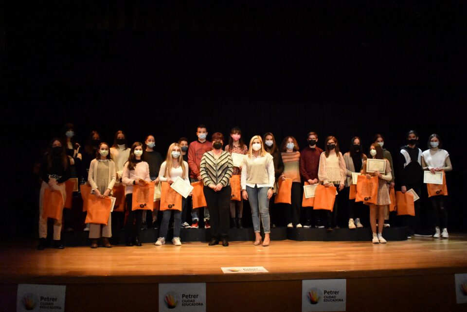 En un emotivo acto celebrado ayer por la tarde-noche en el Centro Cultural de Petrer, el Ayuntamiento de Petrer, de manos de su alcaldesa, Irene Navarro, y de la concejala de Educación, Sabina Sendra, reconoció el esfuerzo y el trabajo de los centros educativos durante la pandemia y llevó a cabo la entrega de diplomas a los alumnos y alumnas que han tenido la máxima calificación y, por tanto, han obtenido el Premio Extraordinario a su expediente académico tanto en primaria como en secundaria durante el curso 2020-21, reconocimiento que concede la administración autonómica.