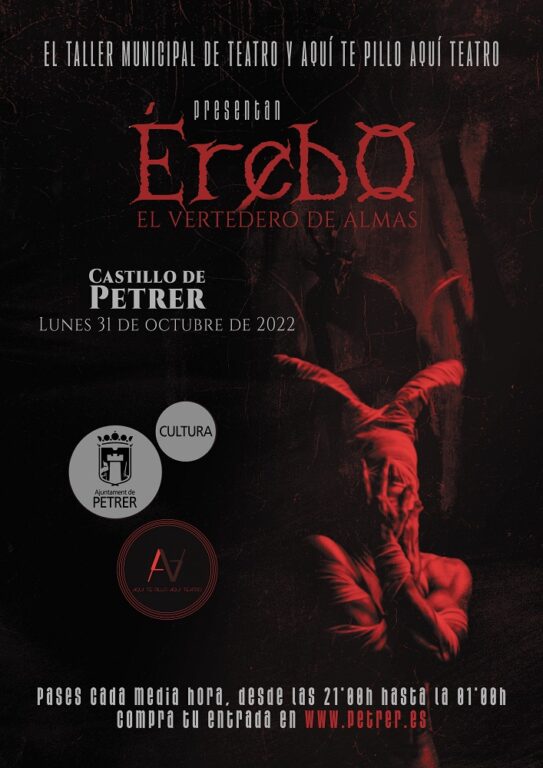 En el caso de la concejalía de Cultura, de la mano del Taller municipal de teatro que dirige la actriz Begoña Tenés, el terror volverá al Castillo-fortaleza de Petrer con el espectáculo “Érebo, el vertedero de almas”. Fernando Portillo, concejal de Cultura, ha recordado que antes de la pandemia, en 2018, cuando arrancó el Taller municipal de teatro en Petrer, ya se montó un espectáculo en el castillo.