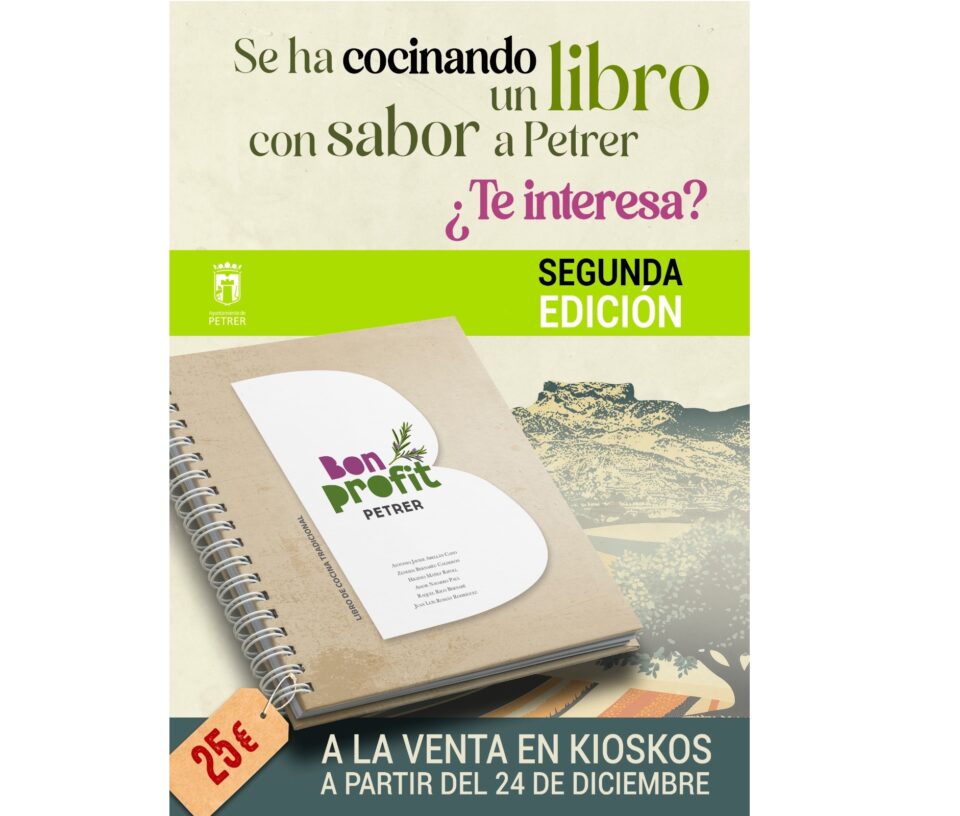 Hoy se ha anunciado la reedición del libro «Bon Profit, Petrer«, una obra que recoge las tradiciones gastronómicas locales y cuya primera edición se agotó en apenas 12 minutos. Esta nueva tirada de 300 ejemplares estará disponible a partir del próximo martes, día 24 de diciembre, en cinco librerías del municipio: Papelería EÑE, Librería Sanchiz, Librería Castilla, Kiosco Laura y Librería Petrer.