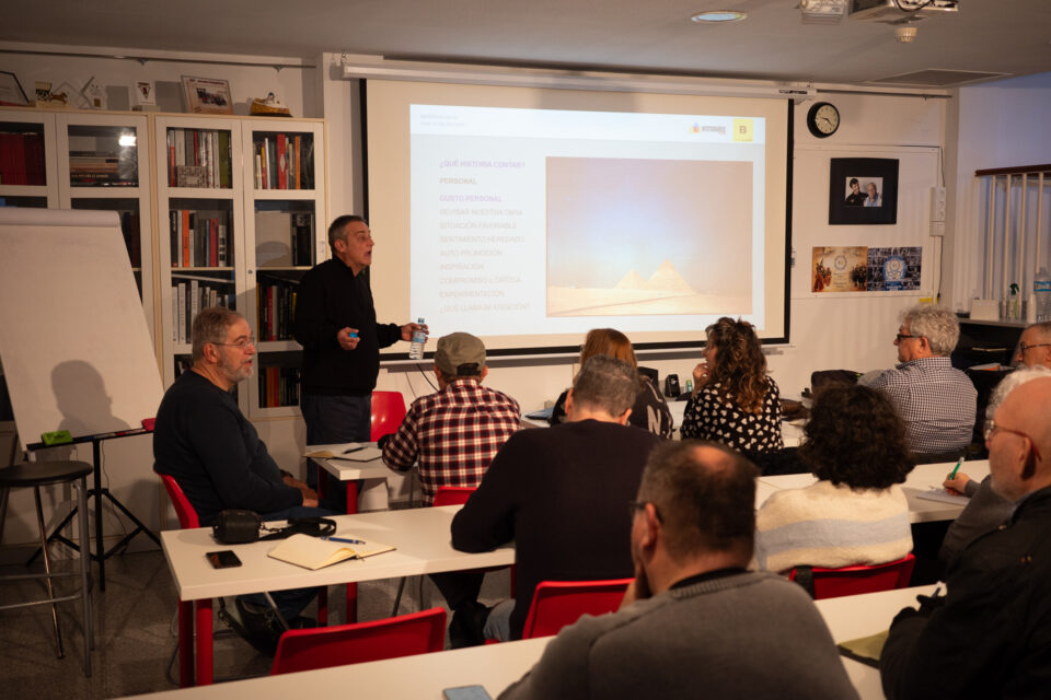 Seguidamente, Pascual Maestre daba cuenta de esos dos ejercicios. Por un lado, el Laboratorio de Creatividad e Investigación Fotográfica, tutorizado a cargo de Alfonso Almendros, fotógrafo de Petrer y que ya va teniendo cierta relevancia, y, por otro lado, el ejercicio Correspondencia de fotógrafo a fotógrafo llevado a cabo entre septiembre de 2022 y septiembre de 2023, en el que cada participante recibe una imagen de otro socio, por correo electrónico, sin saber de quién es, y debe responder, como si fuera una carta, con otra fotografía, que sea análoga en contenido, forma, contraste… En total han participado entre los dos ejercicios más de 30 socios. Al igual que en ediciones anteriores, estos cuatro formatos de salida se han conectado entre sí, siendo posible pasar de uno a otro mediante códigos QR y enlaces web, para llegar al mayor público posible, siendo los que se detallan a continuación: