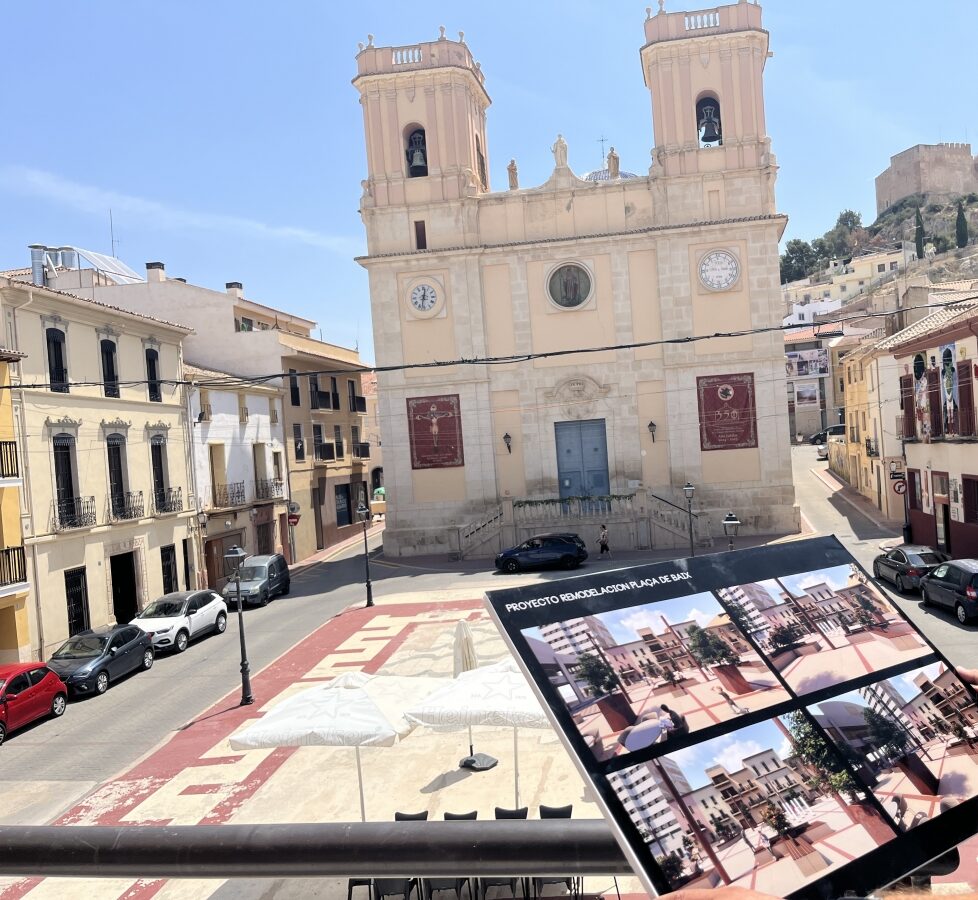 El proyecto contempla la renovación completa de la Plaza de Baix, considerada la plaza más emblemática de la ciudad, no solo por su valor histórico y patrimonial, con edificaciones y usos que se remontan siglos atrás, sino también como espacio social y simbólico. Durante décadas, la plaza ha sido punto de encuentro para los grandes acontecimientos del municipio: desde actos centrales de las Fiestas de Moros y Cristianos y las Fiestas Patronales, hasta celebraciones deportivas y religiosas, al albergar edificios tan relevantes como la Iglesia de San Bartolomé y el propio Ayuntamiento.