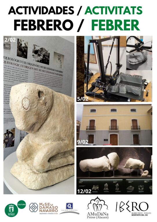 El jueves 9 de febrero, a las 19.30, se ha organizado la conferencia “El conjunto escultórico de Monforte del Cid. Un área sagrada ibérica en el valle del Vinalopó” por José David Busquier, director del Museo IBERO de Monforte del Cid. Y, relacionado con esta actividad, el domingo 12 de febrero, a las 11 de mañana, está prevista una visita guiada al Museo IBERO y centro histórico de Monforte del Cid con explicaciones del propio director del museo, José David Busquier.