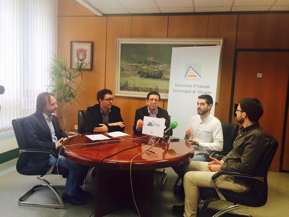 El logotipo se basa en la imagen del castillo de Petrer sobre un par de libros, utilizando el azul en representación de la Universidad de Alicante y el verde por Petrer.
