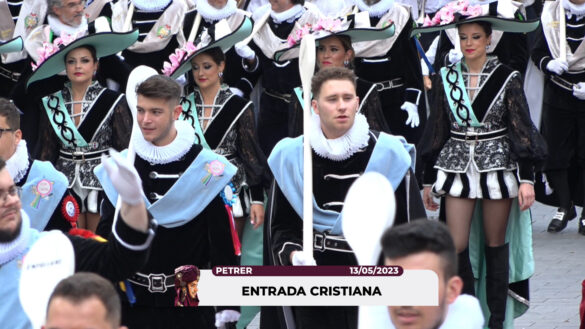 El sábado 13 de mayo las calles de Petrer se han engalanado para acoger la Entrada Cristiana en la que han desfilado a partir de las 11.00 horas, primero los Labradores seguidos de Vizcaínos, Marinos, Tercio de Flandes y Estudiantes y, a continuación, las cinco comparsas del bando moro: Fronterizos, Moros Nuevos, Beduinos, Moros Viejos y Berberiscos.