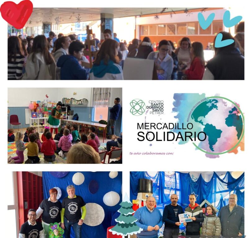 La recaudación mencionada ha sido gracias al trabajo del alumnado y profesorado por la elaboración de las manualidades y los talleres de maquillaje, y a los familiares que adquirieron los trabajos efectuados por sus hijos. El mercadillo se completó con sesiones de cuentacuentos “Federito va al cole”, por parte de componentes de Sense Barreres Teatre, así como los cuentos narrados por Rosa Mª Riquelme y las actuaciones de la SDS Band dirigidos por Gabriel Pastor y el grupo musical de Secundaria dirigido por Antonio Roda. Y otra actividad muy popular como es el puesto de gofres y crepés coordinado por María Mira.»