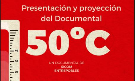 Petrer, 14 de septiembre de 2022 La Asociación Entrepobles y la asociación de periodismo social Solidaritat y Comunicació (SICOM) proyectan el documental 50ºC el próximo jueves 29 de septiembre a las 19:30h en el Ateneu Cultural Republicà de Petrer (Passeig de l’Esplanada, 9, Petrer). Seguidamente, tendrá lugar un coloquio-debate con las y los asistentes a la actividad.