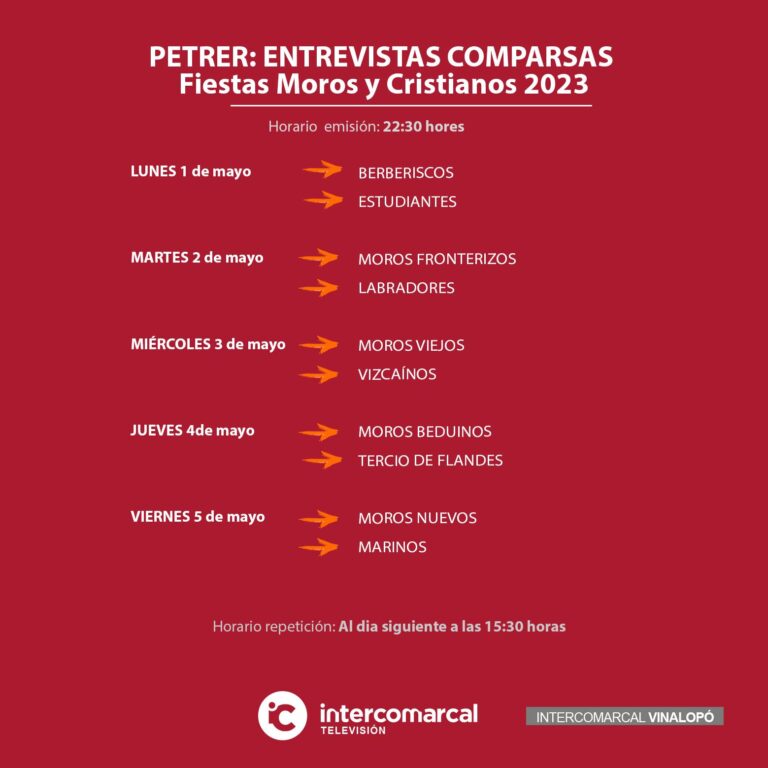 Queda muy poco para las Fiestas de . Si quieres conocer a todas las capitanías y a las directivas de las comparsas, no te pierdas las entrevistas festeras de este año. ¡La Fiesta de Petrer es soñadora, valiente, orgullosa, majestuosa, divertida, pasional, integradora…! y se celebra del .