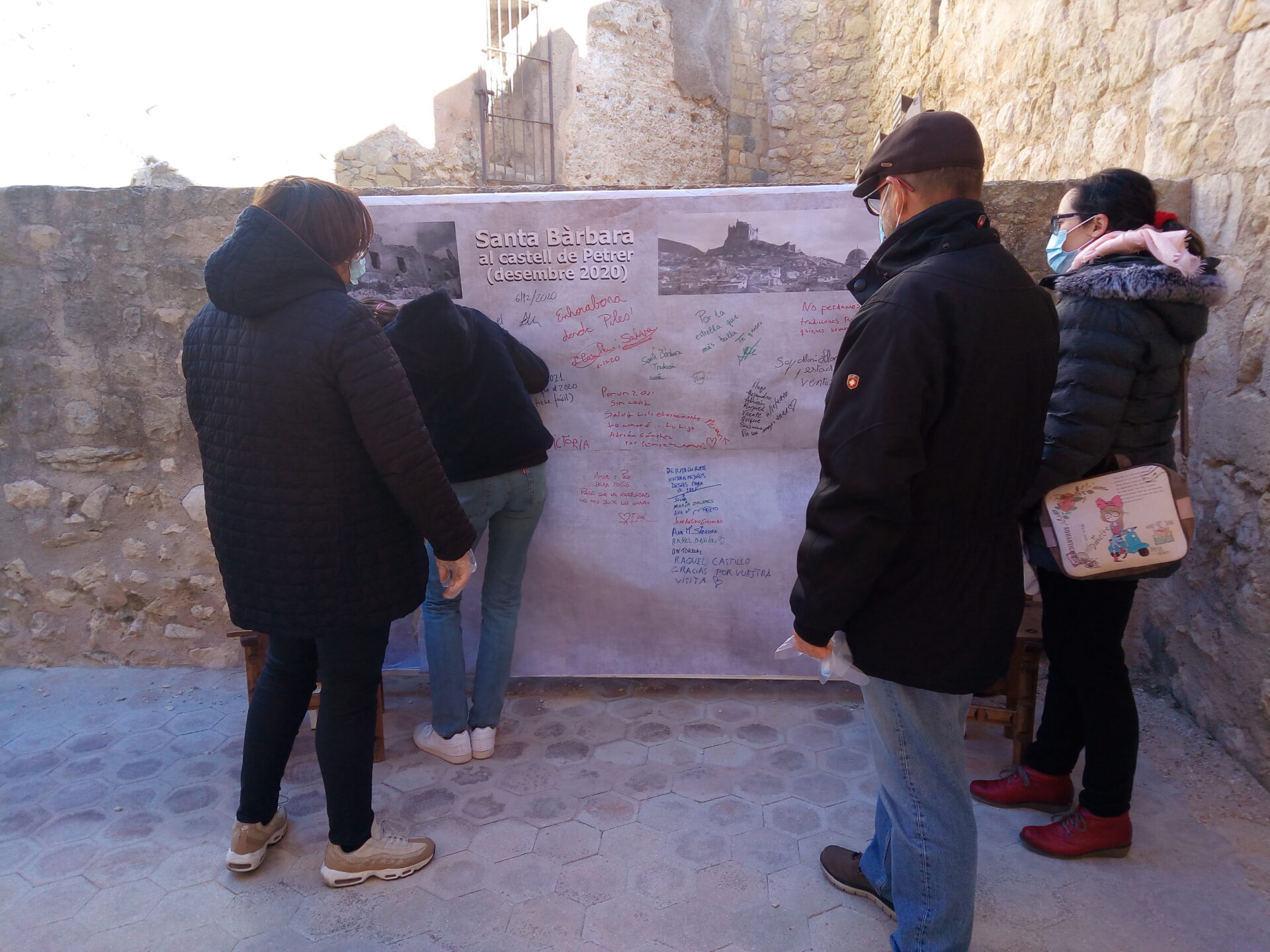 La tradición, que se interrumpió en la década de los setenta cuando empezaron las obras de rehabilitación de la fortaleza, fue recuperada por el Ayuntamiento de Petrer hace 7 años. Hace décadas la tradición consistía en subir al castillo para dejar en las murallas la marca de la visita generando un grafito personal en las paredes de la torre, del calabozo o de la sala noble del castillo. Hoy, por cuestiones de conservación del patrimonio, los visitantes también pueden dejar una marca de su visita, pero en un panel con un lienzo de papel de grandes dimensiones habilitado por el personal del Museo.