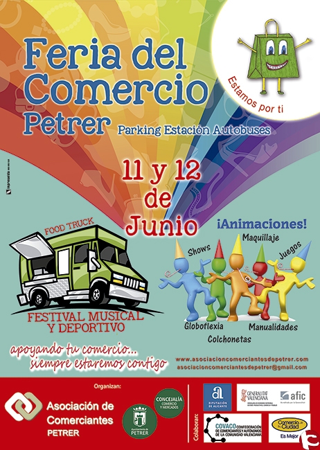 En su habitual espacio del aparcamiento de la estación de autobuses, la Asociación de Comerciantes de la localidad ha preparado para el fin de semana del 11 y 12 de junio una feria del comercio con varios atractivos. Así, y además de, por supuesto, docenas de stands de negocios de todo tipo (normalmente con productos en ofertas y notables descuentos), también habrá animación deportiva y musical, un food truck y toda clase de divertimentos para los más pequeños, desde talleres de juegos y manualidades hasta presencia de colchonetas y diversas animaciones.