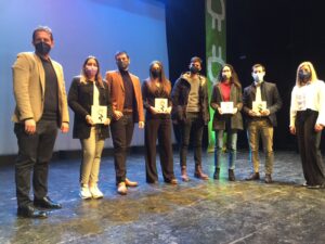 En el podio de ganadores de la 6ª edición de la lanzadera de proyectos empresariales impulsada por el Ayuntamiento de Petrer, han estado acompañados, con el segundo premio, por Guillermo del Barco Aldaz, Yago Sierras Peral, Silvia Antón Sempere y Alejandro Simón Marhuenda, creadores de “Mediterranean Algae”, proyecto para la producción y comercialización de macroalgas del Mediterráneo en tierra.