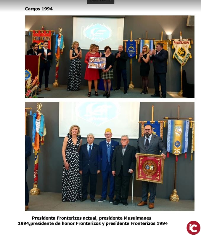 Además del homenaje a los Cargos, también se llevaron a cabo otros homenajes, por efemérides, como fue el 25º aniversario del Hermanamiento entre las comparsas de Moros Fronterizos de Petrer y Moros Musulmanes de Elda, contando con la inestimable presencia del presidente de los Musulmanes en 1994, José Blanes Peinado, asÍ como del Presidente de los Fronterizos en 1994, José Luís Torregrosa.