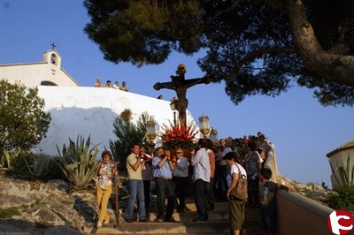 La Colla El Terròs. El recorrido será el siguiente: Plaça de Baix, Cánovas del castillo, Plaza del Derrocat, Gabriel Payá, Antonio Torres, Leopoldo Pardines, San Vicente, Independencia, Santísimo Cristo y Ermita. Llegados a la Ermita y colocada la Imagen en su pórtico, se cantarán Los Gozos al Santísimo Cristo con el acompañamiento de la dolçaina, finalizados, tendrá lugar una combinación de fuegos artificiales.