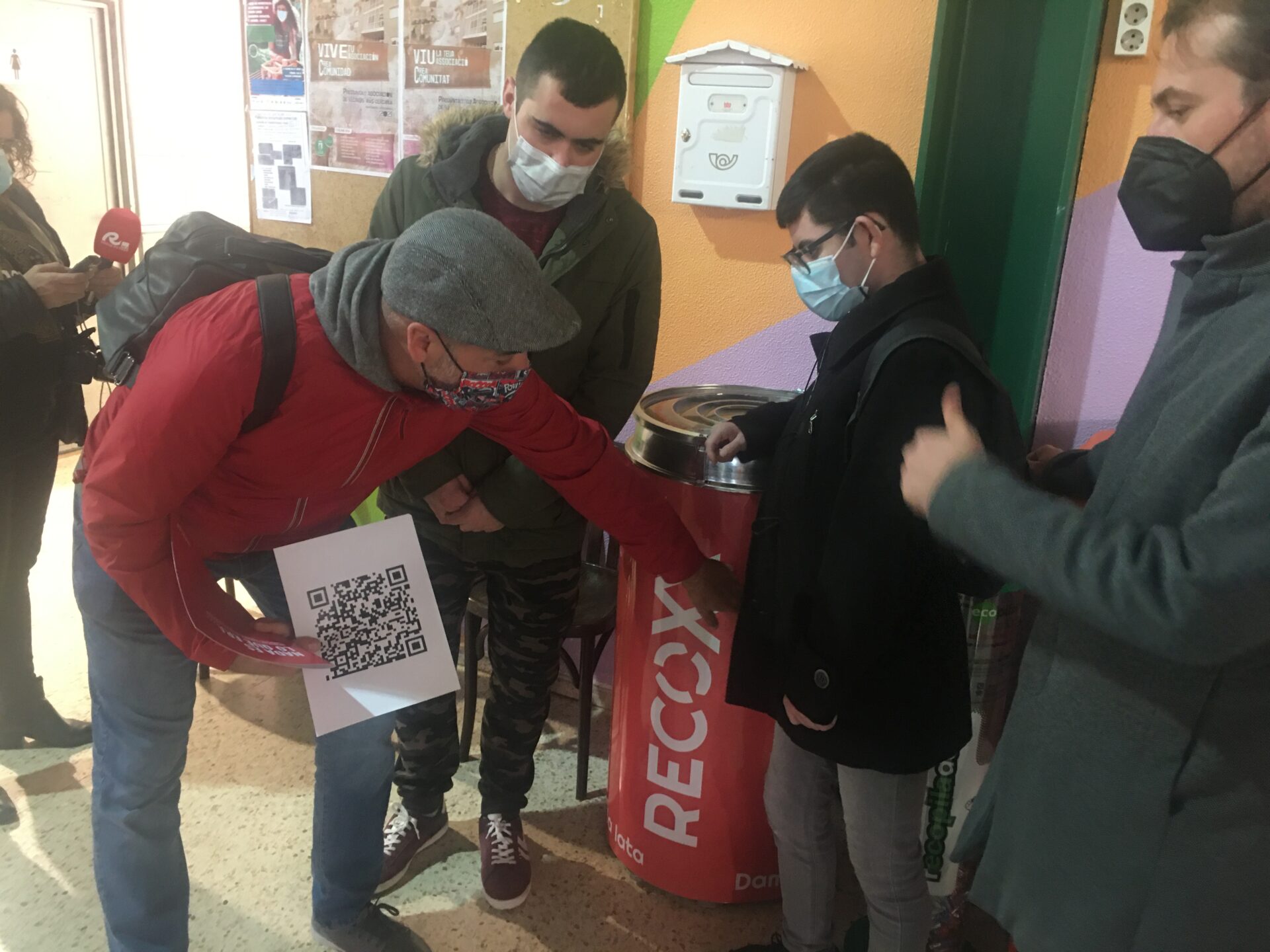 Instalados dos contenedores de recogida de latas hechos con material reciclado y por personas con discapacidad