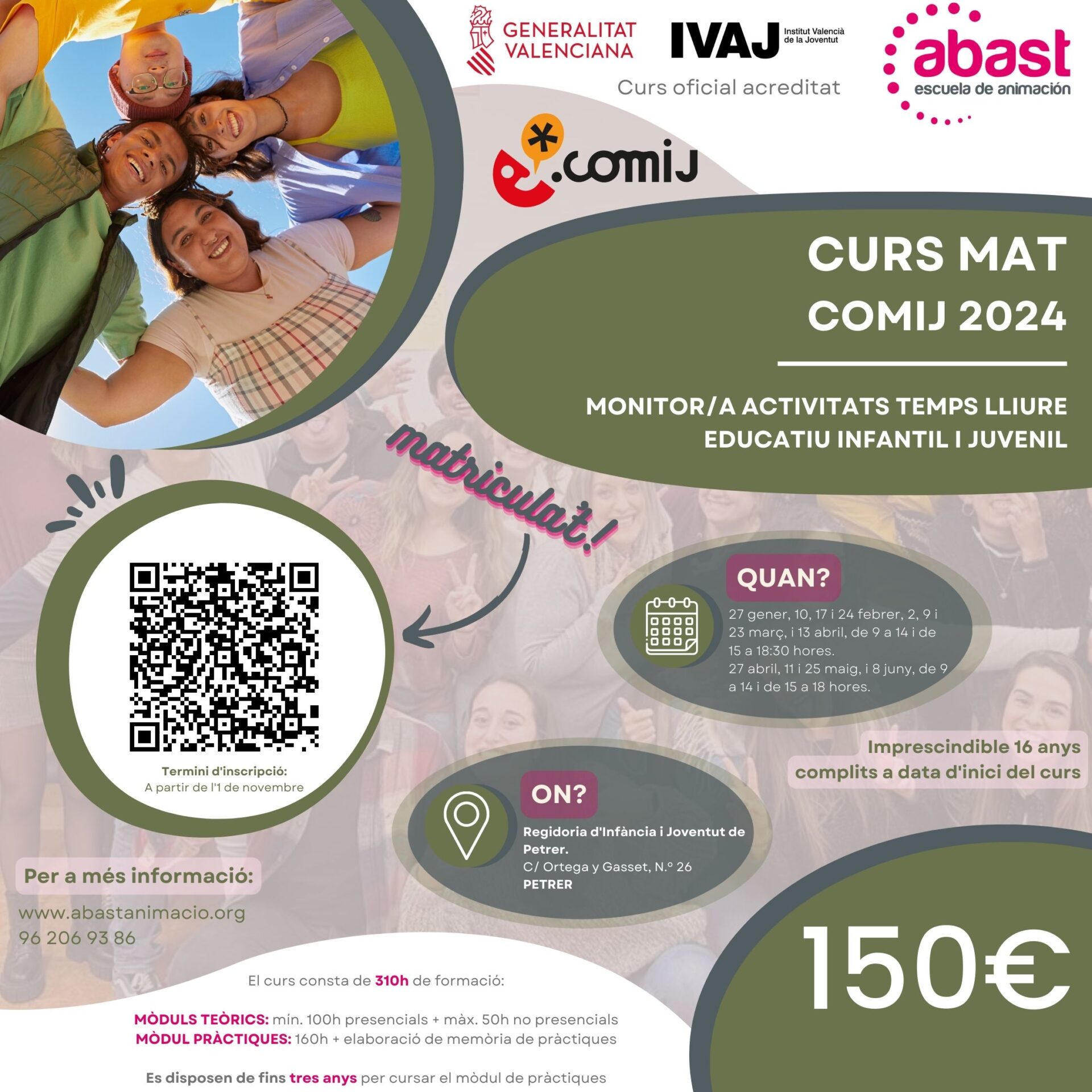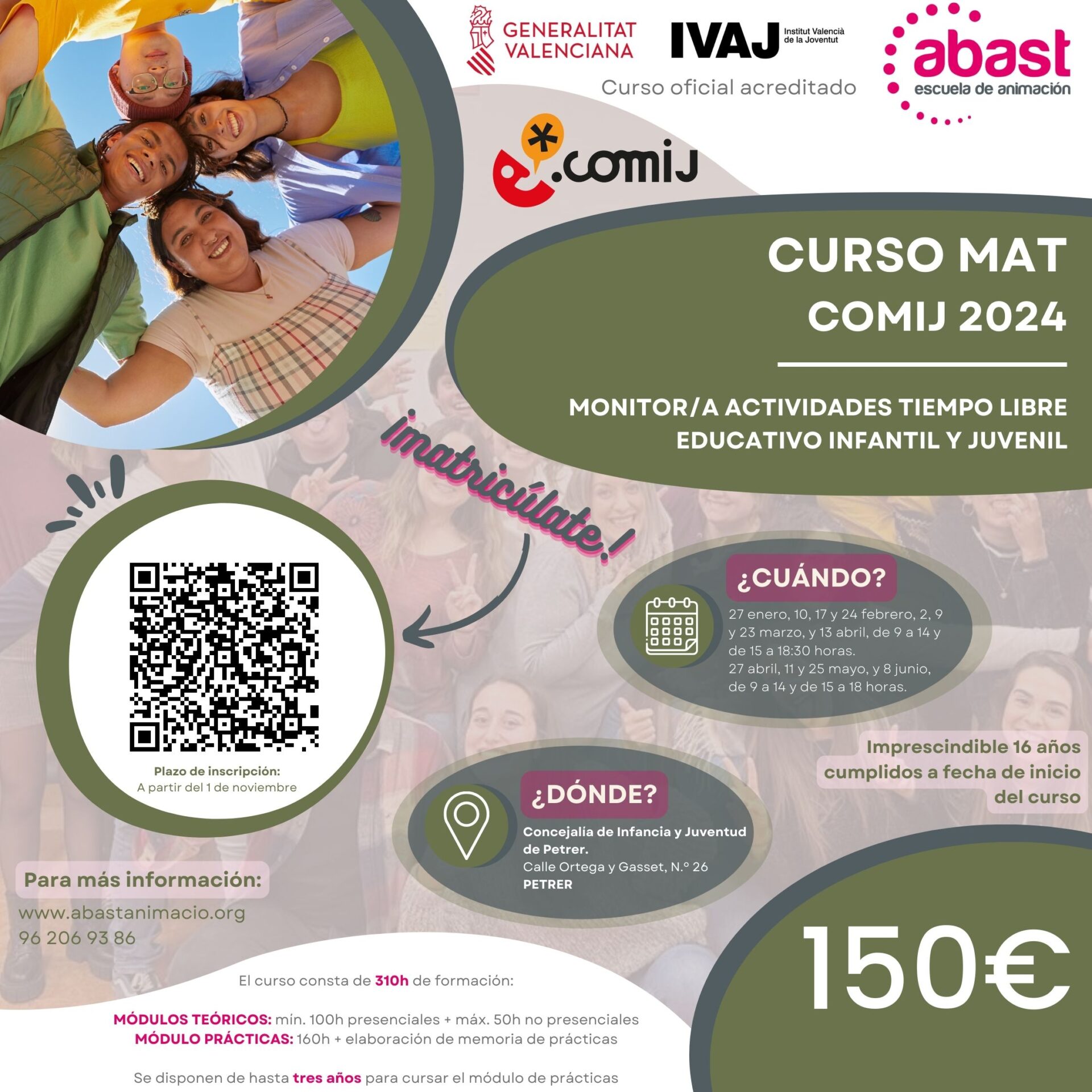 Para participar, los interesados deben realizar una inscripción previa a través del enlace proporcionado en el cartel del evento. El coste de la inscripción es de 150 euros y es “una inversión en el futuro profesional de los jóvenes”, ha remarcado el edil quien ha subrayado que “lo que pretendemos es que adquieran competencias para que después las puedan poner en práctica y que accedan a trabajos que les permitan desarrollarse en el ámbito laboral”.