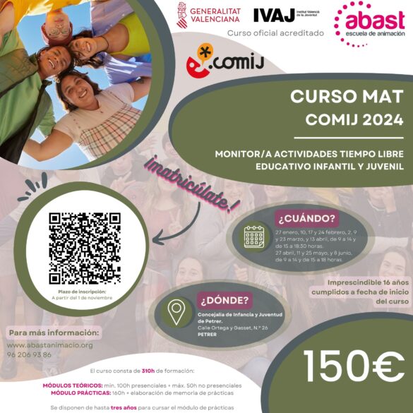 El concejal de Juventud del Ayuntamiento de Petrer, Alejandro Ruiz, ha presentado una nueva edición del curso MAT (Monitor/a de Actividades de Tiempo Libre Educativo Infantil y Juvenil), dirigido a jóvenes a partir de 16 años. Este programa formativo es “una excelente oportunidad para que los habitantes de la localidad y de la comarca adquieran competencias esenciales para el desarrollo de actividades de ocio y tiempo libre”, ha indicado el regidor.