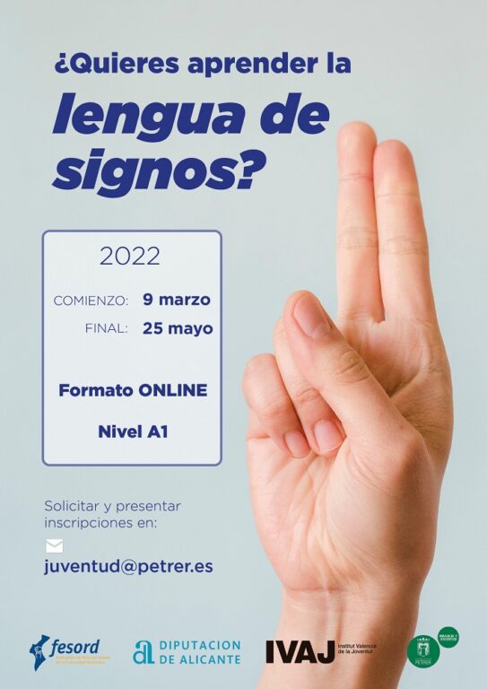 El curso, de 3 meses de duración, nivel A1 y formato online, está dirigido a personas mayores de 16 años y será impartido por Fesord (Federación de Personas Sordas de la Comunidad Valenciana) para que la titulación obtenida sea oficial. Comenzará el próximo 9 de marzo hasta el 25 de mayo, ofertándose 25 plazas.