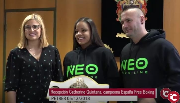 La boxeadora profesional colombiana, Katherine Quintana Narvaez, más conocida como «La mamba negra», ganó el campeonato de España de free boxing GBF en la categoría de peso ligero, al derrotar en un combate de 4×2 a la contrincante de Petrer, Eva Marina Cantos «La Pincel». Katherine ha ido de la mano de su maestro, el sajeño Diego Riquelme, y su entrenador nacional GBF Y FEB, Cesar Rodríguez Picó. Este título tiene mucho valor ya que lo ha logrado después de ser mamá hace apenas 5 meses.