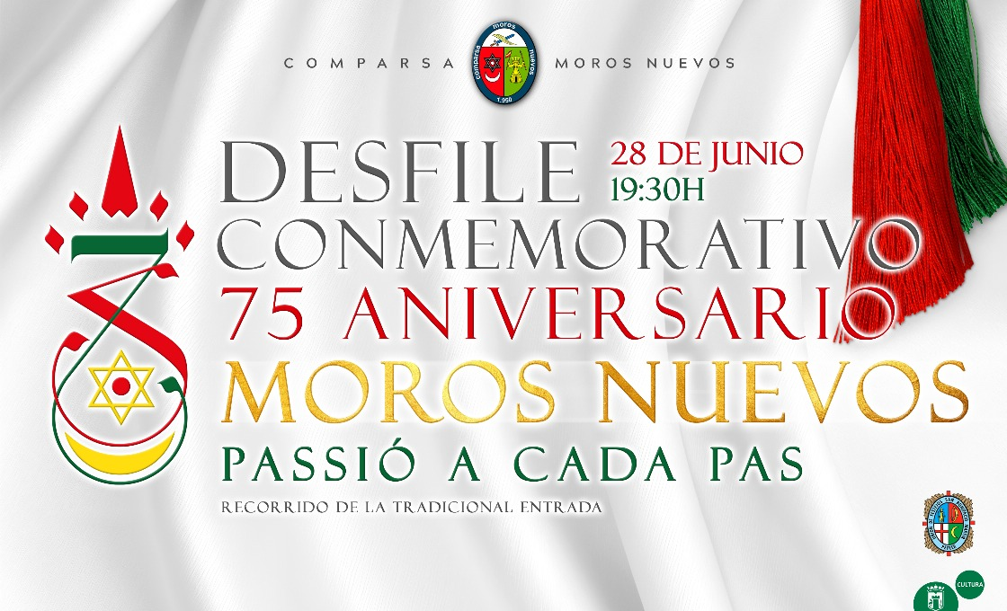 La Comparsa de Moros Nuevos de Petrer pondrá el broche de oro a la conmemoración de su 75 Aniversario el próximo sábado 28 de junio, con un completo programa de actos que combina tradición, historia y convivencia para celebrar esta efeméride tan señalada.