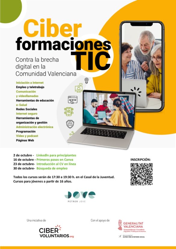 La Fundación Cibervoluntarios es una organización sin ánimo de lucro que trabaja para reducir la brecha digital y fomentar el uso consciente y ético de las tecnologías. Gracias a su colaboración, estos cursos proporcionarán conocimientos actualizados y prácticos en el entorno digital, contribuyendo a que los jóvenes de Petrer estén mejor preparados para enfrentar los retos laborales y personales del futuro.