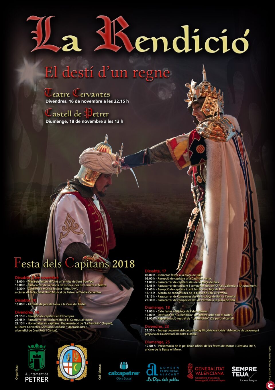 Por su parte, Portillo ha destacado que este año la Rendició sera toda en un mismo fin de semana. La primera parte se realizará el viernes 16 a las 22:15 horas en el Teatro Cervantes y la segunda parte se representará en el castillo el domingo 18 a las 13:00 horas.