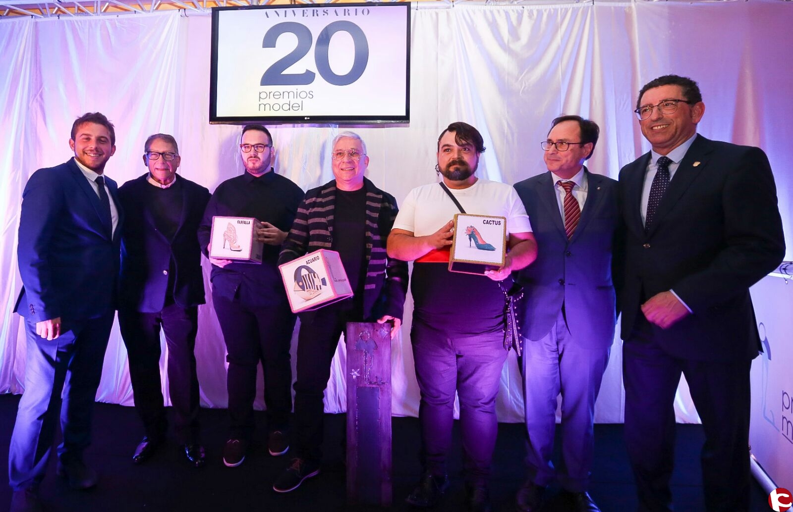 En su 20 aniversario el premio al Mejor Calzado ha recaído en el ilicitano Jorge Murillo por su creación «Farfalla», quien ganó el año pasado pero en la categoría de bolsos. El galardón al Mejor Bolso ha sido para el petrelense Freddy Enrique Corredor por «Acuario». Ambos han recibido un premio de 2.000 euros.