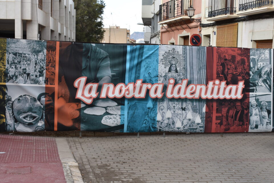 La plaza de Baix se engalana con murales fotográficos para las Fiestas Patronales
