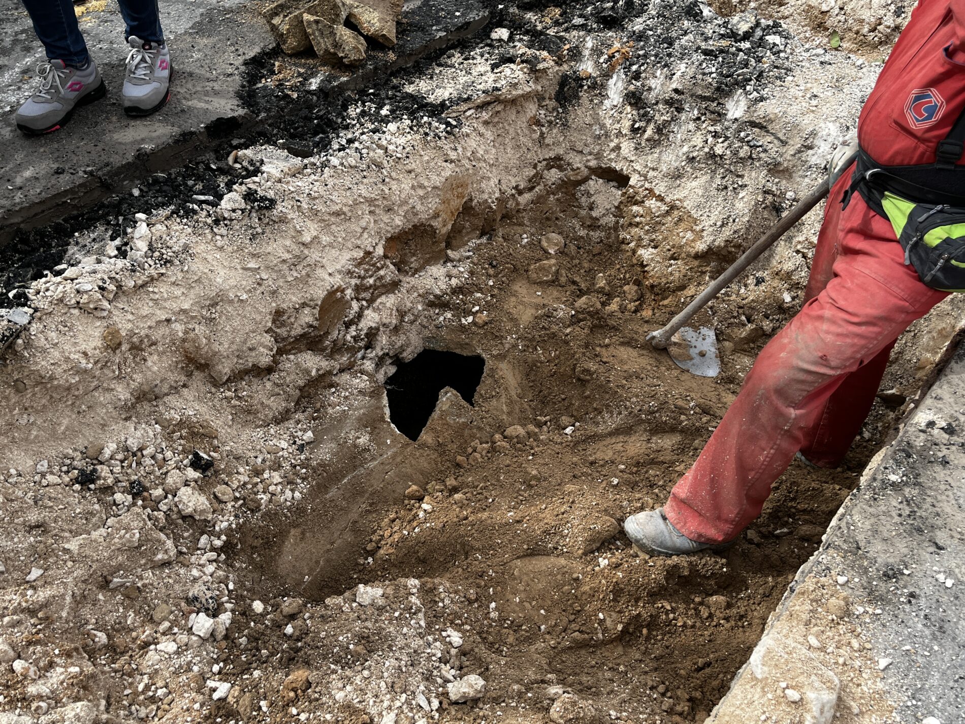 Esta misma mañana, tras la rotura del alcantarillado provocada por las intensas lluvias de ayer, con 30 l/m2, el Ayuntamiento ha comenzado con los trabajos de inspección y reparación.
