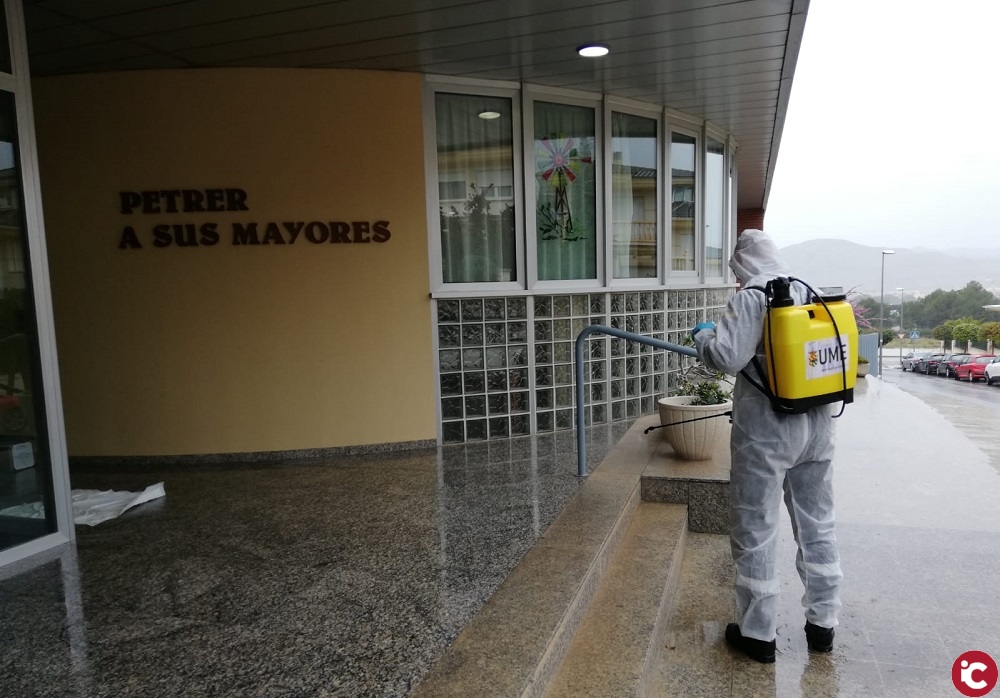Durante toda la mañana, la Unidad Militar de Emergencias, UME, está trabajando intensamente en la desinfección de las principales zonas de Petrer y Elda.
