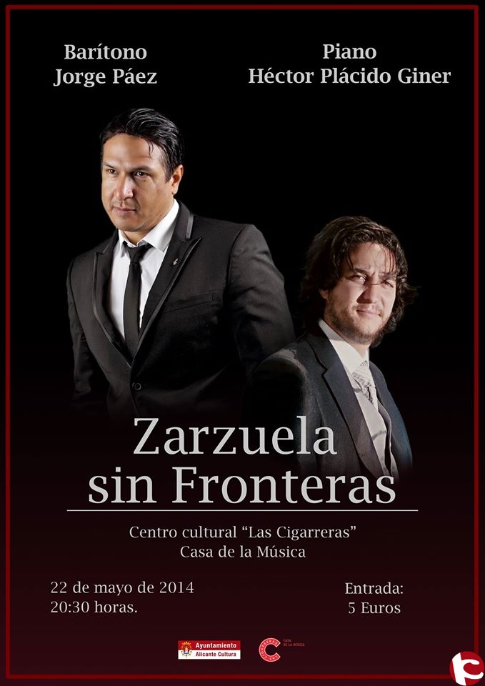 La “Zarzuela sin fronteras” llegará el próximo sábado díes de octubre a las ocho de la tarde con el baritono Jorge Páez y el pianista Héctgor Placido Ginés.