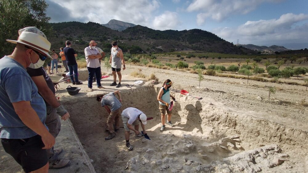 Además, los hallazgos cerámicos son del periodo andalusí que va desde finales del X hasta el s. XIII. También una punta de huso encontrada en uno de los dos sondeos, entre los derrumbes de una posible casa. Se trata de un tipo de herramienta realizada con cobre (latón o bronce) ligadas a los trabajos de hilado y muy típicas en al Andalus. También se ha documentado un suelo agrícola antiguo con surcos de arado manual, Cabe recordar que los hallazgos del Grupo Arqueológico en los años 1968-69 permitieron recuperar unas yeserías que son únicas en la provincia de Alicante y que hoy se pueden contemplar en el Museo