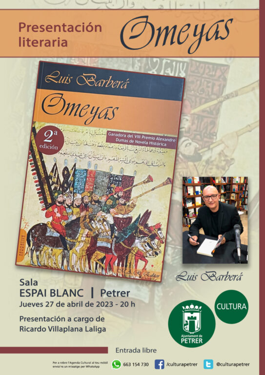 Este jueves, 27 de abril, a las 20.00h, en la sala Espai Blanc, Luis Barberá presentará su libro “Omeyas”, obra ganadora del VIII Premio Alexandre Dumas de Novela Histórica, en la que participaron 224 novelas de 25 países.