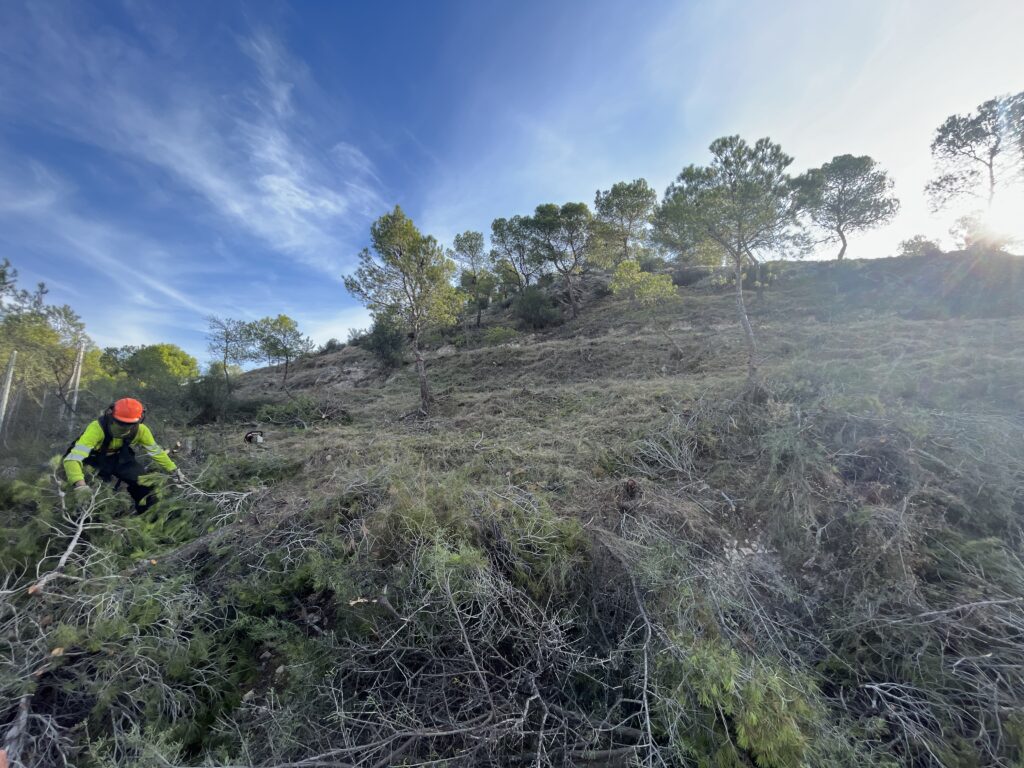 En las parcelas perimetrales seleccionadas se está procediendo al desbroce, roza, poda y clareo del arbolado. “Es una zona bastante complicada por la orografía del terreno”, ha explicado Juan Estrada, responsable de la empresa contratada para acometer los trabajos, quien ha explicado que “una vez ejecutada la faja a lo dos años hay que hacer un desbroce selectivo, y a los siguientes dos años hay que volver a realizar un tratamiento de desbroce y selvícola con la tala de pinos para evitar que en caso de incendio se propague a través de las copas de los árboles que es mucho más difícil de atajar”.