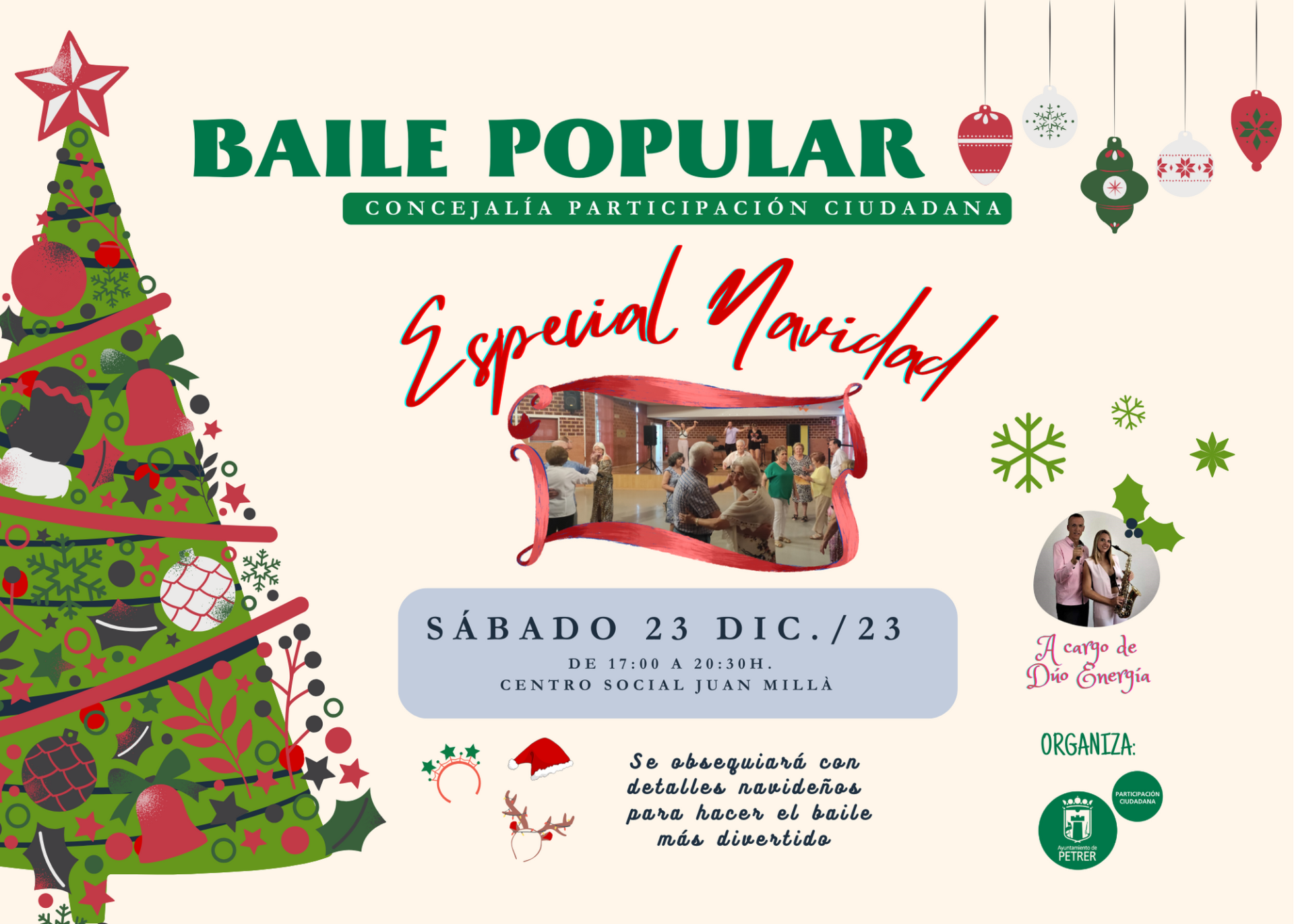 La concejalía de Participación Ciudadana ha organizado, para este sábado 23 de diciembre, una jornada especial de Navidad de su actividad del Baile Popular de la que disfrutan muchas personas en las tardes de los sábados.