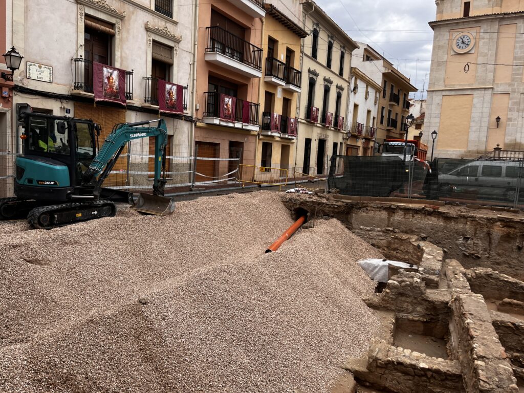 Con el visto bueno de la Consellería de Educación, Cultura y Deporte, las concejalías de Patrimonio y Urbanismo están llevando a cabo una actuación de emergencia en la excavación de Villa Petraria de la plaza de Baix consistente en el cubrimiento de la zona, de manera provisional, con geotextil de protección y grava para preservar todos los hallazgos.